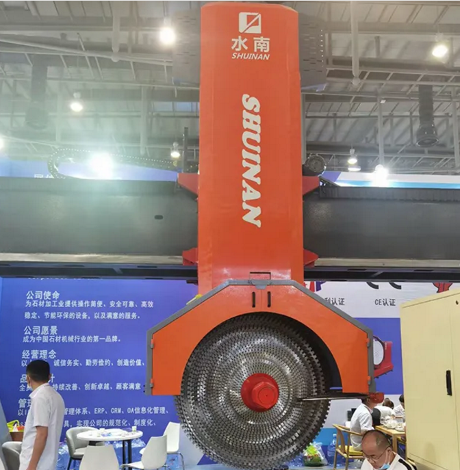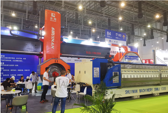 展會現(xiàn)場除新9代智能雙刀礦山機受參展者贊賞以外,本公司自主研發(fā)的雙梁龍門切石機和全自動連續(xù)磨機也是咨詢不斷。